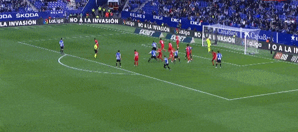 第27分钟,对方奥利维拉解围时,将球踢向队友身上,球弹进自家大门,西班牙人2-0领先,非常幸运。