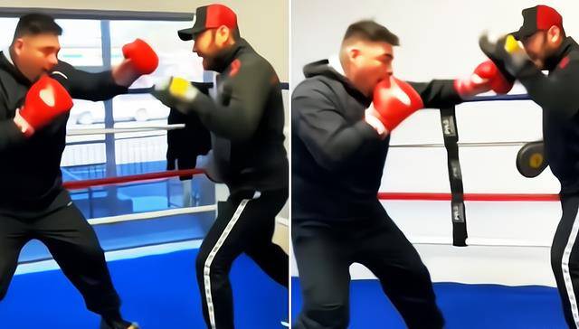 视频中,鲁伊兹正与助手实施打手靶练习,与以往练习不同的是,鲁伊兹此次没有一味地进攻,相反是攻防结合,打出一二连击之后,马上实施回防,整个训练的节奏很快。