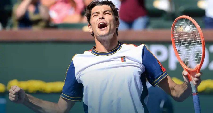 美国奶爸弗里茨,生于1997年,身高1米96,2015年转入职业,2016年结婚,2017年不满20岁的他就生儿子当奶爸了,没想到2019年又离婚了。也许是奶爸不容易当呀,网球基因好(父母亲都曾是职业网球选手)、发球迅猛、正手攻击力强大的弗里茨,今年以前在巡回赛摸爬滚打了7年,一直没有取得什么亮眼的成绩,大满贯最好成绩仅仅只是进入第三轮而已,大师赛最好成绩也只是2021年巴黎大师赛进入八强,冠军只有一个(ATP250伊斯特本草地赛),亚军5个(4个ATP250硬地赛、1个ATP500硬地赛),世界排名也未能进入前20位。