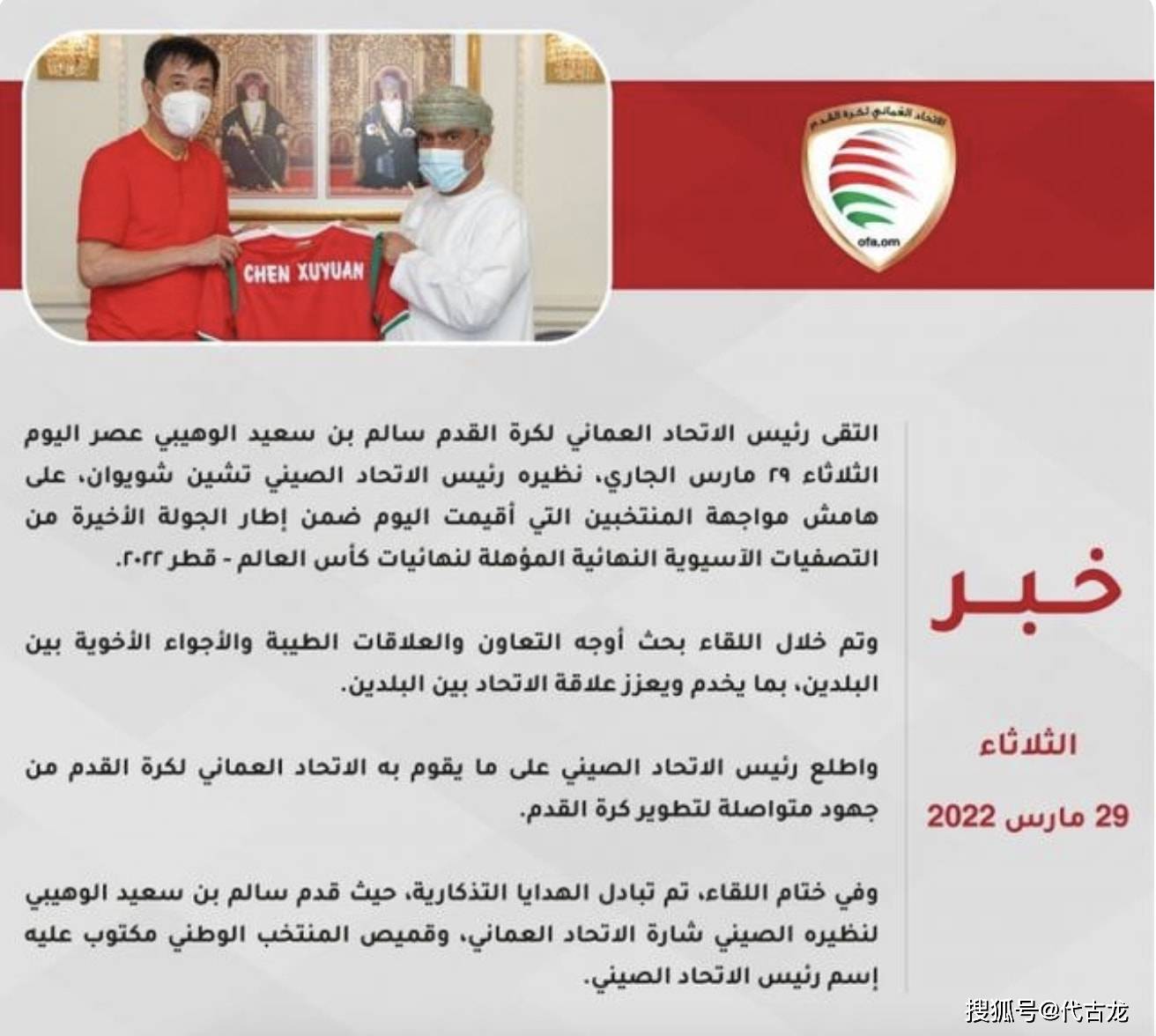 这一次西征,足协主席陈戌源亲自带队,只是很遗憾,成绩并不理想,但陈戌源跟阿曼足协高层有过亲密交流,得到了对方送的印有“chenxuyuan”的签名球衣,陈戌源笑得很开心,在业务交流上,或许取得了一些经。