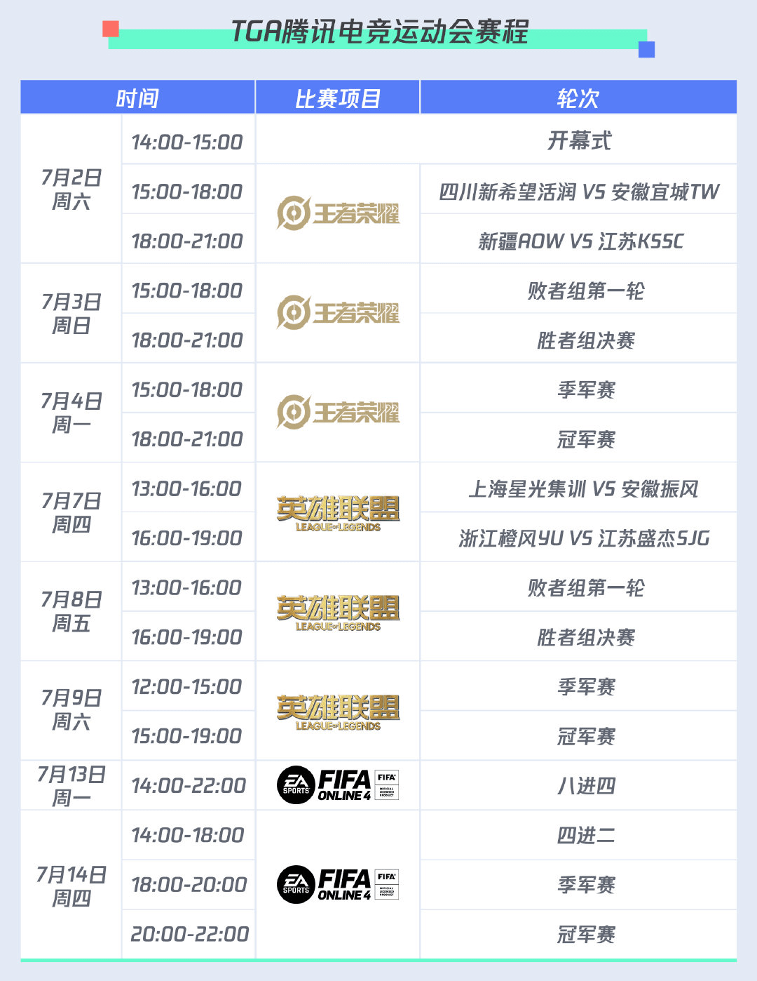 比赛项目包含了王者荣耀、英雄联盟、FIFA Online4。