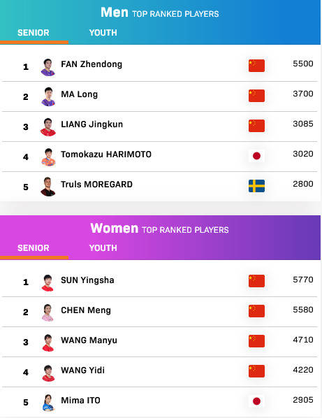 - >国际乒联更新排名:樊振东、孙颖莎单打世界第一