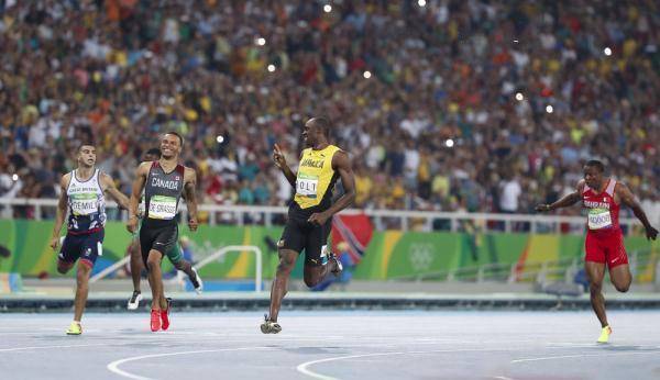 2016年8月17日,牙买加选手博尔特(右二)在里约奥运会田径男子200米半决赛中。新华社记者韩岩摄