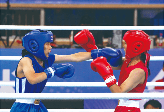 赛场上,随着裁判员一声令下,运动员们各显神通,直拳、勾拳、摆拳等拳法技术让人大呼过瘾;滑步、冲刺步、环绕步等步伐技术令人眼花缭乱。运动员们进行着体能、技术和心理的比拼,展示出高超的拳击竞技水平。势均力敌的精彩较量,教练、观众的呐喊助威,更是把比赛推向高潮。