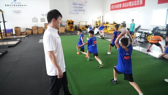 近日,北京冬奥会自由式滑雪男子空中技巧冠军齐广璞回到长春市冬季运动管理中心,与小队员们交流训练心得。