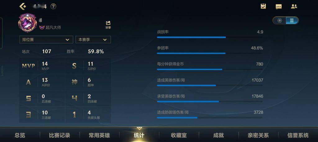 - >英雄联盟手游:打野单排一百多场终于上大师了