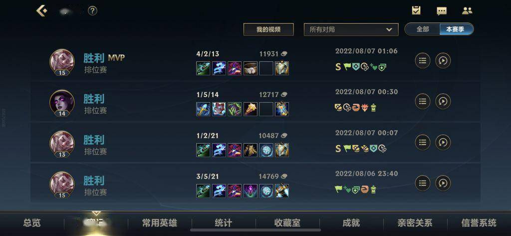 先放战绩图,再说说自己的出装和思路,欢迎辅助玩家一起交流呀。
