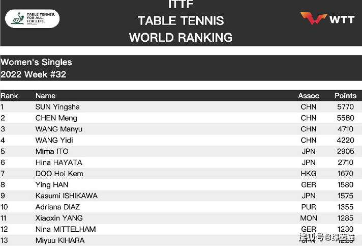 - 国乒10人出战8人过关,大胖世界第三暂稳,王艺迪或升至第三 22-10-21