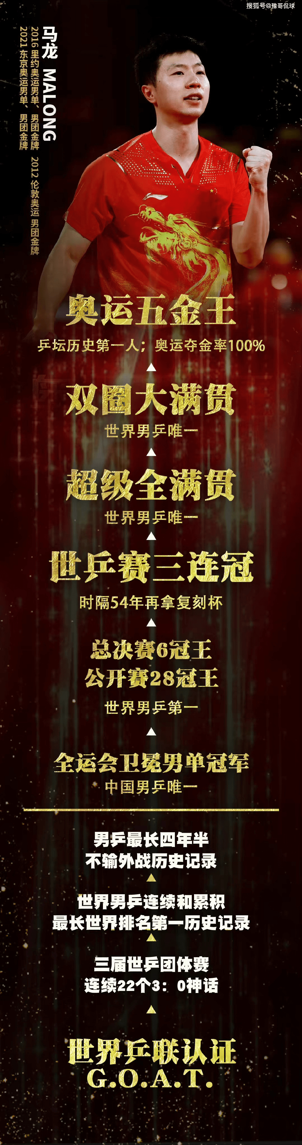说到马龙相信很多球迷朋友不陌生,马龙是国乒的骄傲,职业生涯至今已经拿到了25个世界冠军,成为国乒历史第一人,同时马龙也达成了双圈大满贯的成绩,可以说前无古人,至于后面是否有着,就目前的情况来看,马龙取得的成就可以说短时间无人能超越,很显然马龙已经成为国乒的一个标志。