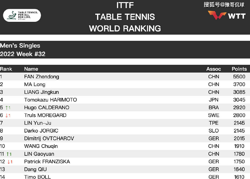 最近国际乒联公布了第32周的世界排名,男乒这边樊振东一枝独秀高居榜首,马龙排在第二名,相比较樊振东的5500积分,马龙的3700积分和第三名梁靖崑,第四名日本名将张本智和的3045积分相差并不算多,有可能一战的比赛马龙就会被超越。