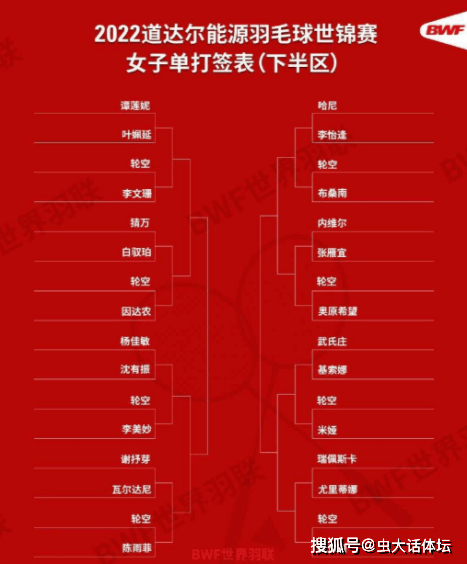 北京时间8月10日,2022羽毛球世锦赛抽签结果出炉,女单组方面,国羽抽中上上签,有望包揽4强。