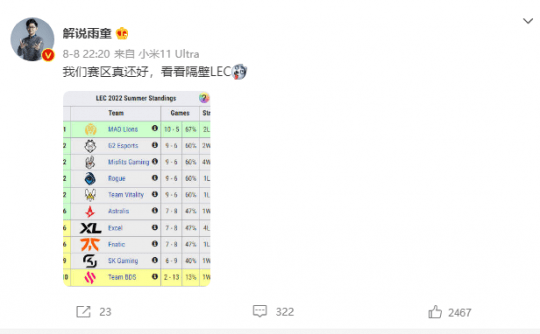就连LPL公认的“数据帝”解说雨童,也提不起为LEC算分的兴致。毕竟每一场比赛的胜负,最终都可能会改变整个赛区的格局。
