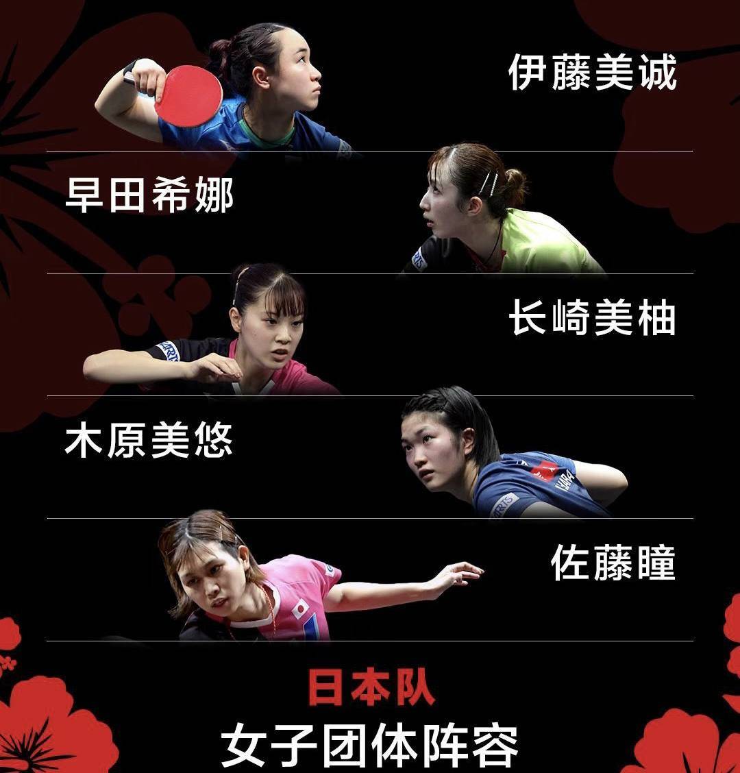 本次成都世乒赛团体赛,中国队以卫冕冠军身份出战,男队主教练秦志戬和女队主教练李隼均表示,球队目前整体状态稳定,目标就是拿到团体冠军。在竞争对手方面,日本队、韩国队、德国队等实力都不容小觑,是四强的大热门。日本队是这几支队伍中最先公布阵容的一个。男子团体阵容上,张本智和领衔出战,其他几位球员分别是户上隼辅、及川瑞基、横谷晟以及丹羽孝希。本届世乒赛团体赛,比拼的是各支球队的单打整体实力。