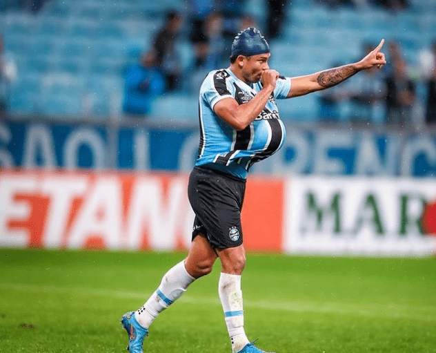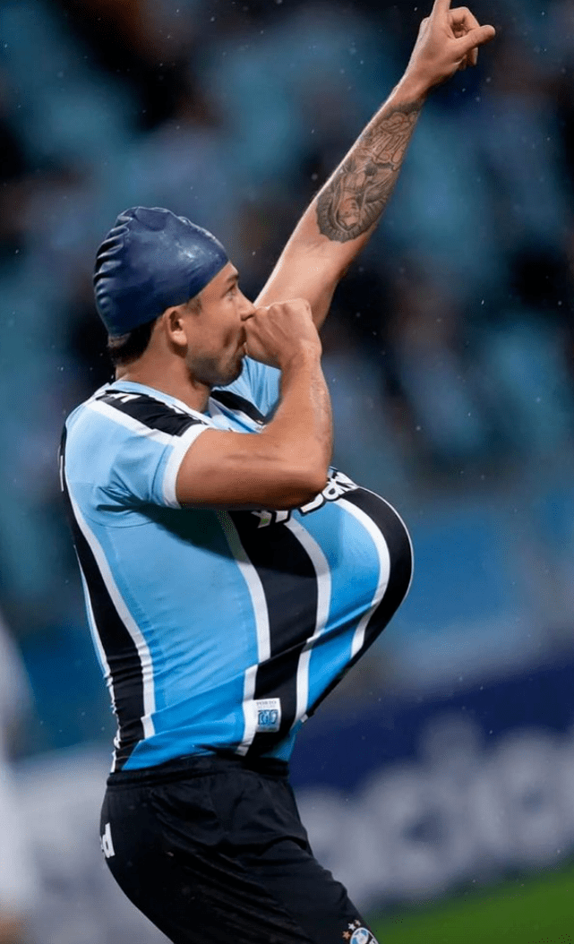巴西乙级联赛第23轮角逐中,格雷米奥队5-1大胜蓬塔格罗萨铁路工人,艾克森替补出场梅开二度,进球后有一个吸奶嘴与把球放在肚子里表达怀孕的庆祝动作。很多人都在问,艾克森又要当爸爸了吗?
