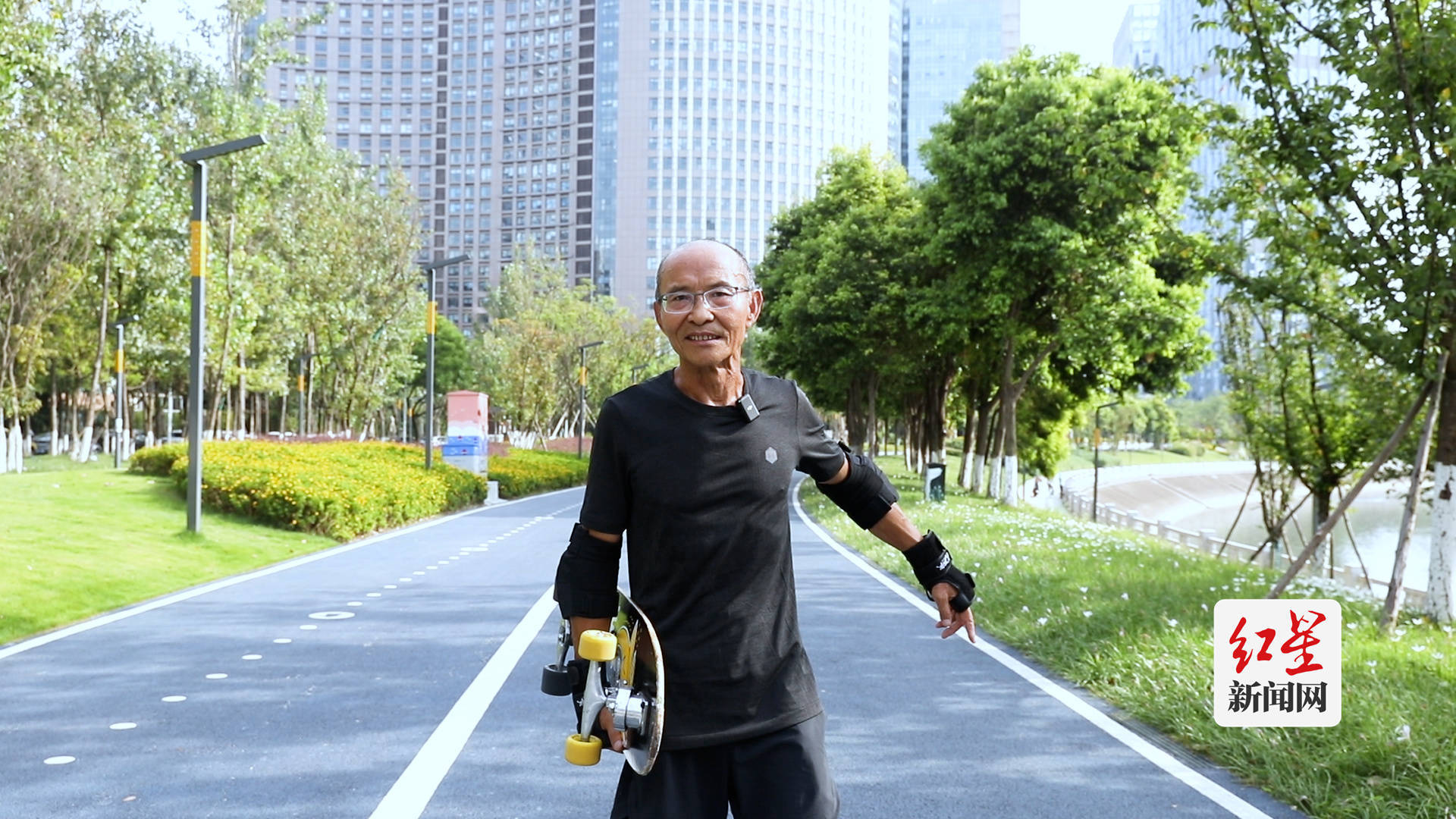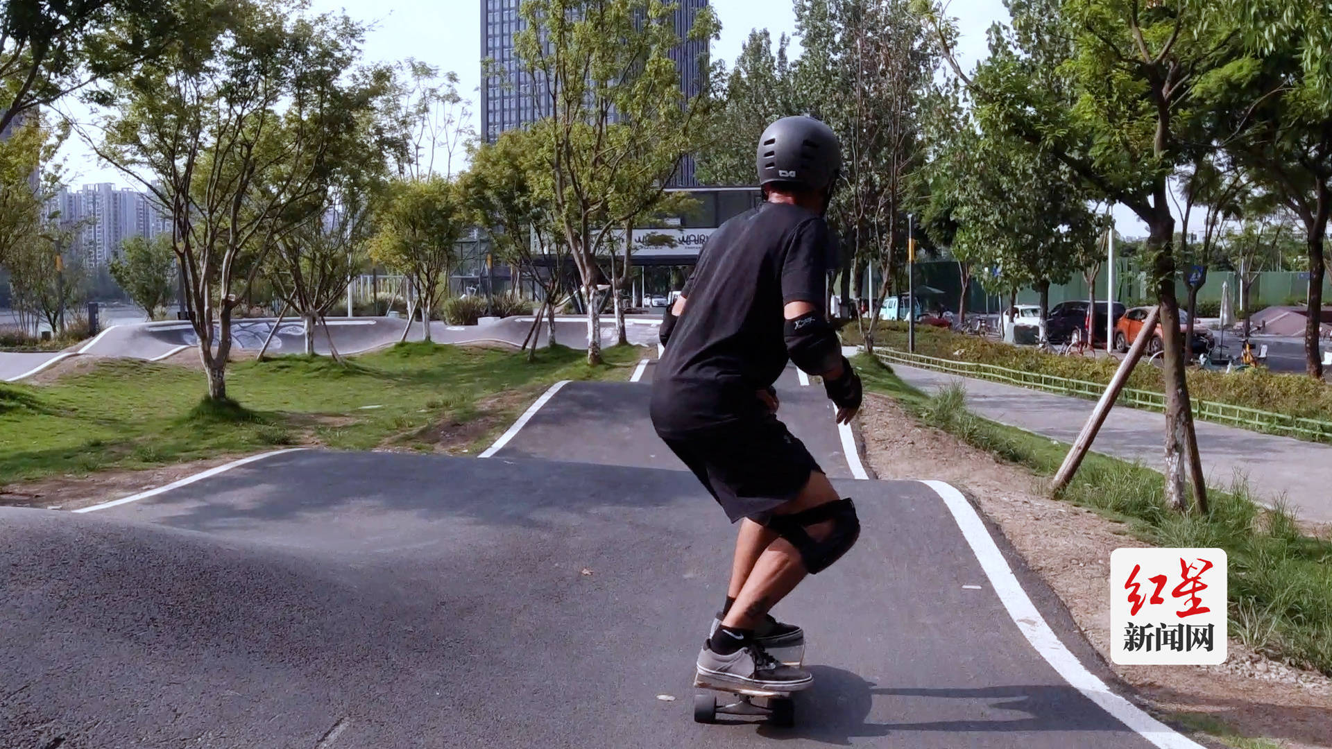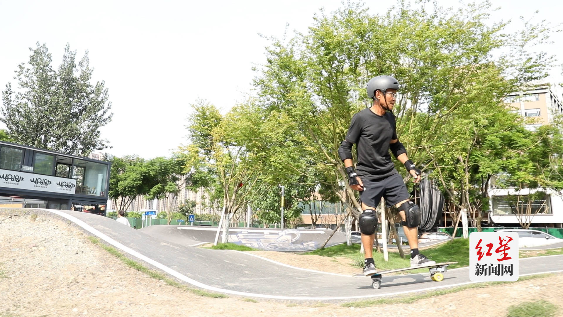 公园里丨68岁,他在绿道玩起陆地冲浪