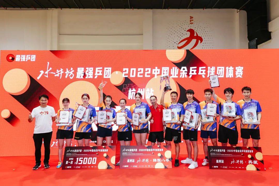 “水井坊”最强乒团·2022中国业余乒乓球团体赛杭州站今天(8月14日)落下帷幕,杭州悦数在最后的决赛中3比1击败广东中山乒协,夺得杭州站冠军。