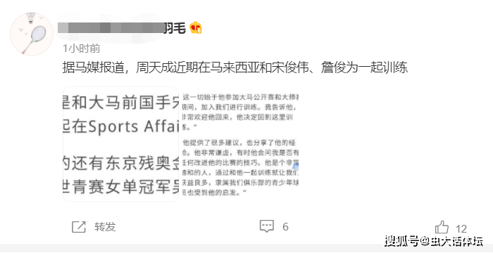 - >羽毛球界结盟训练渐成潮流!周天成前往大马训练,效仿安赛龙!