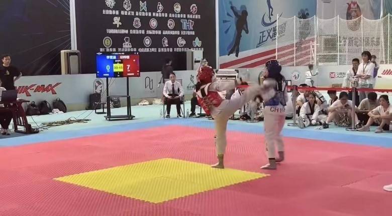在为期两天的比赛中,17支代表队近300名小运动员们身着专业护具在赛场大展拳脚,比拼激烈,下劈、侧踢、回旋踢等高难度动作轮番上演。