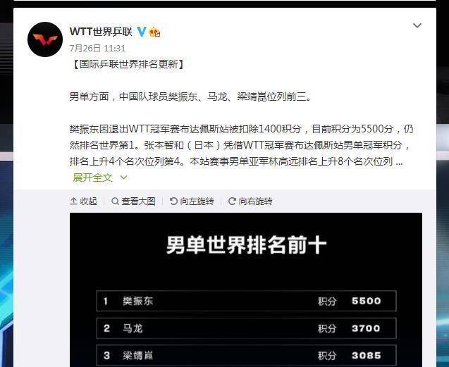- >樊振东被“坑爹”扣掉1400分,国际乒联纠错,世界第一优势再度扩大