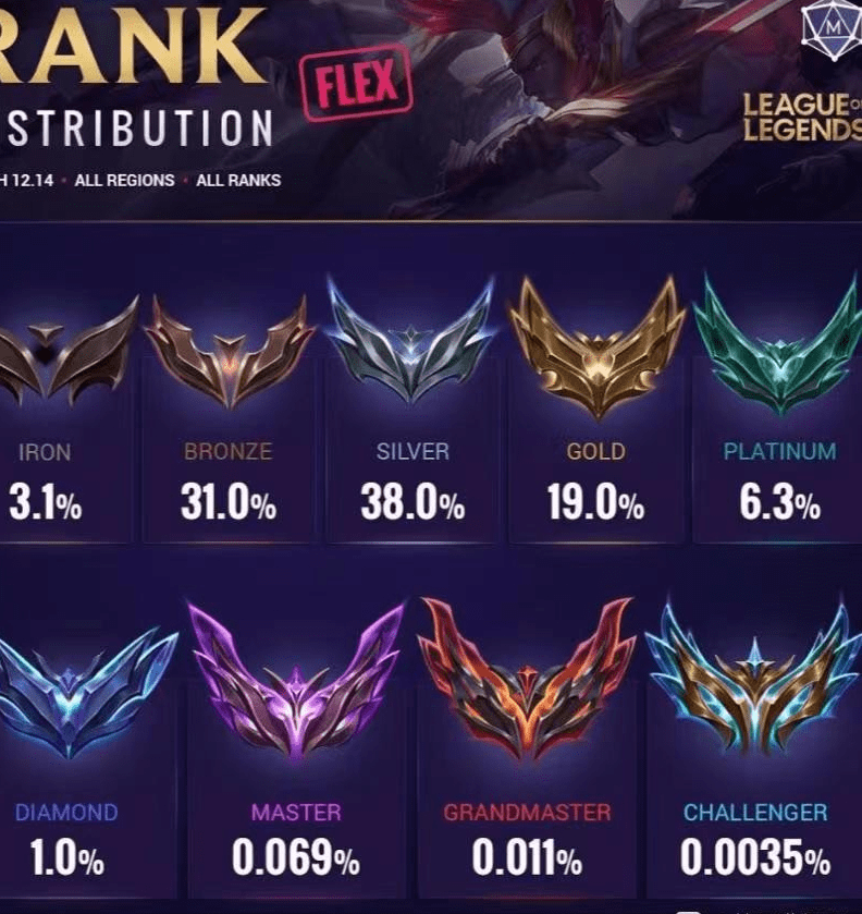 - >“LOL各段玩家人数图”火了,钻石仅1%,“嘴强王者”集中在2段位
