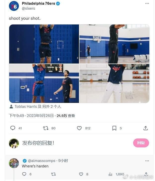 而在76人官方晒出的球员训练照中,也没有哈登的身影。早些时候,76人官方晒出球员训练照,其中有马克西,丹尼-格林、哈里斯等人。网友在评论区留言询问:哈登呢?